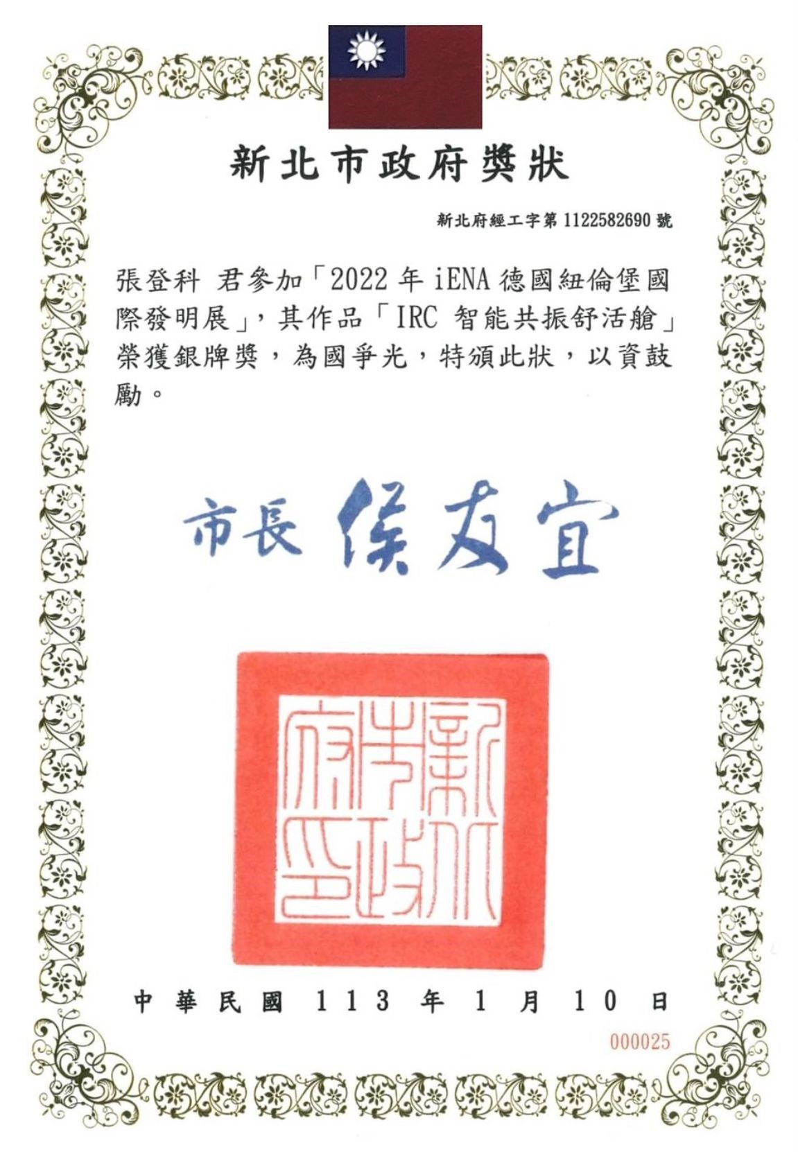 2022 10月德國紐倫堡世界發明展 賀台灣匯芯科技榮獲2022年德國紐倫堡發明展二銀牌一特別獎