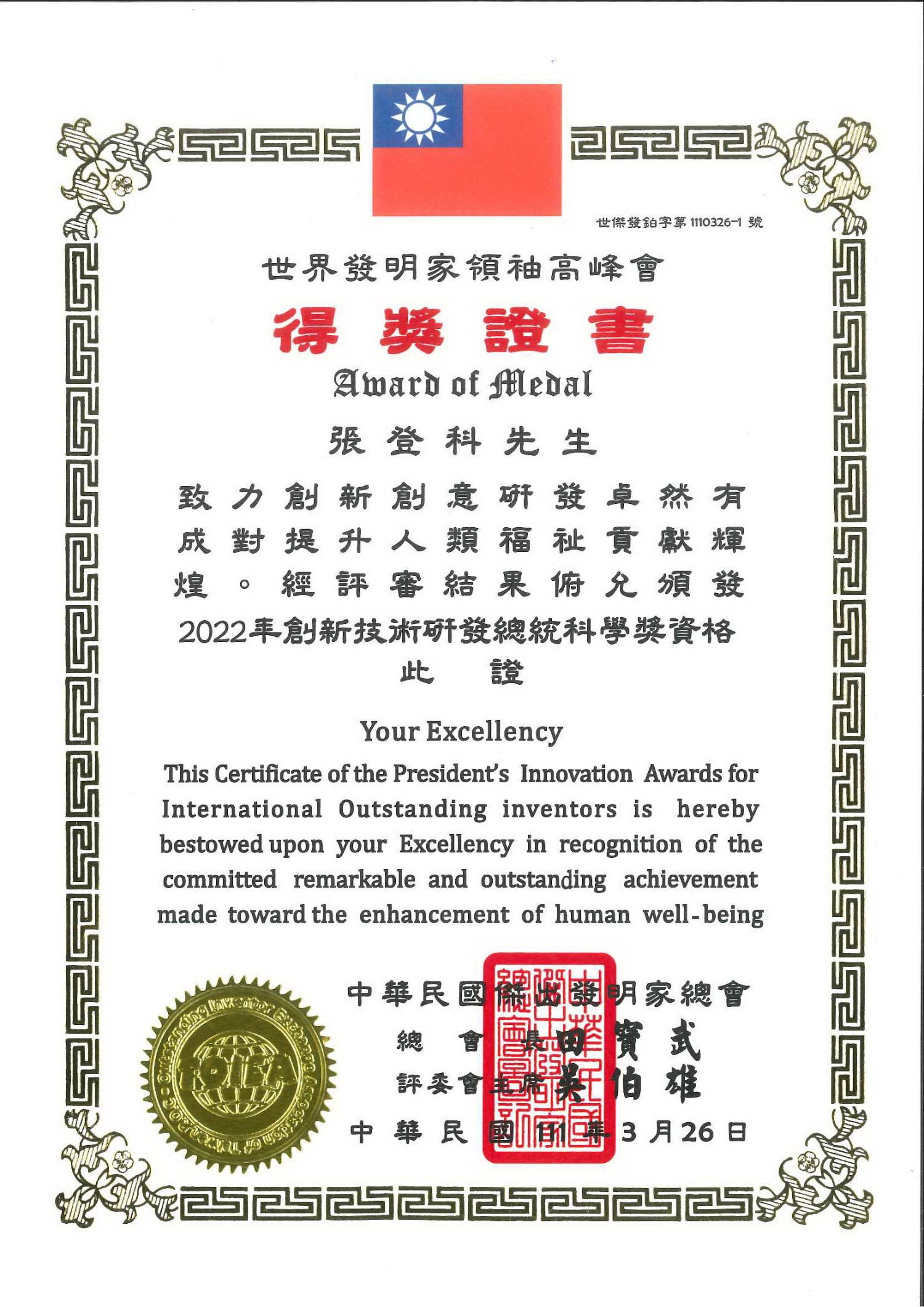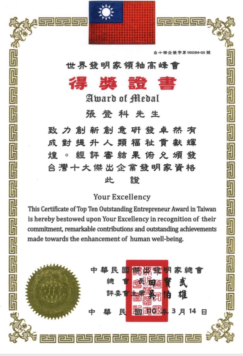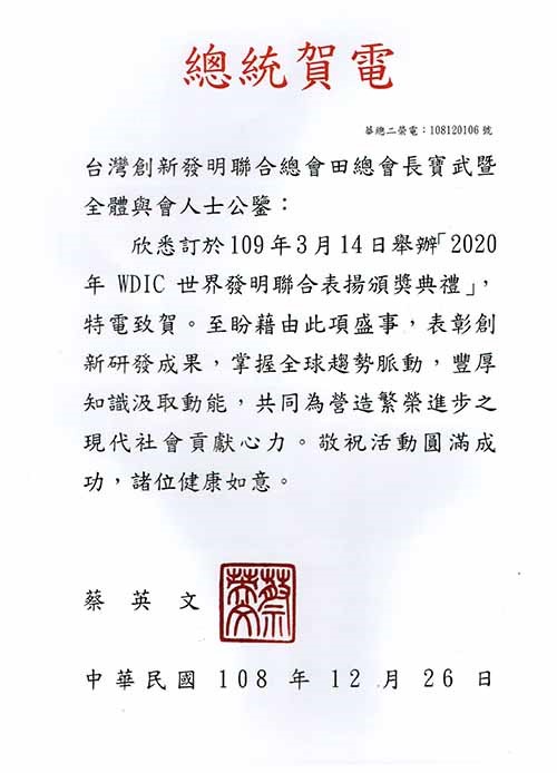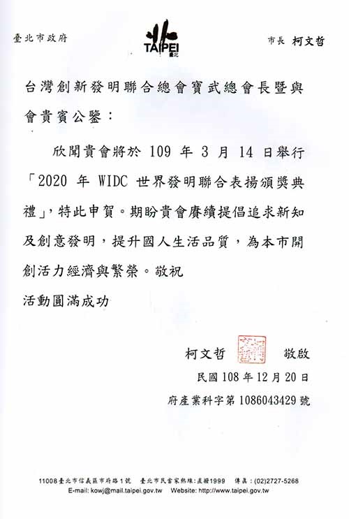 2021 台北市政府WDIC 世界企業發明家 領袖高峰會獎