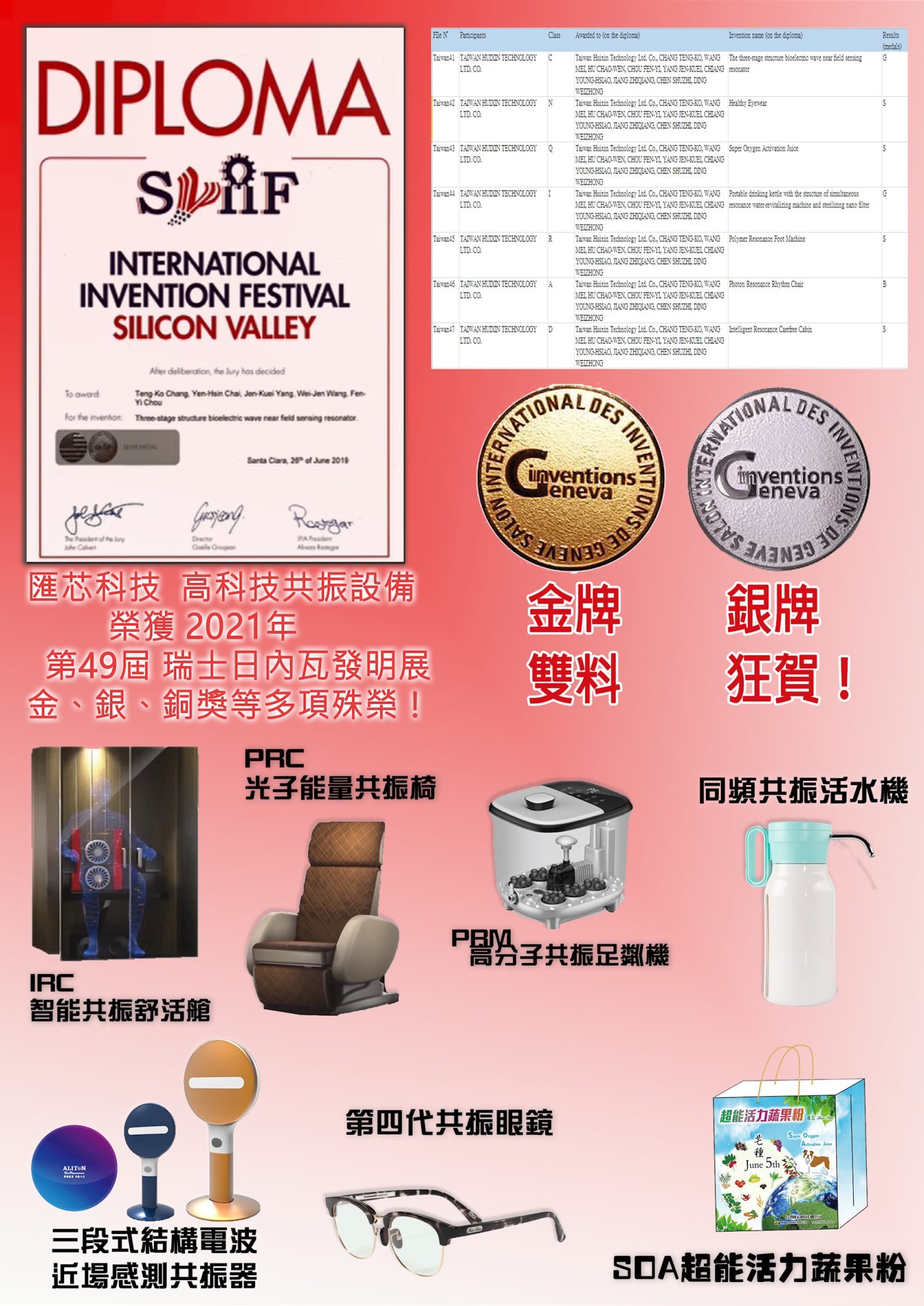 上海國際 發明創新 展覽會 榮獲金、銀獎
