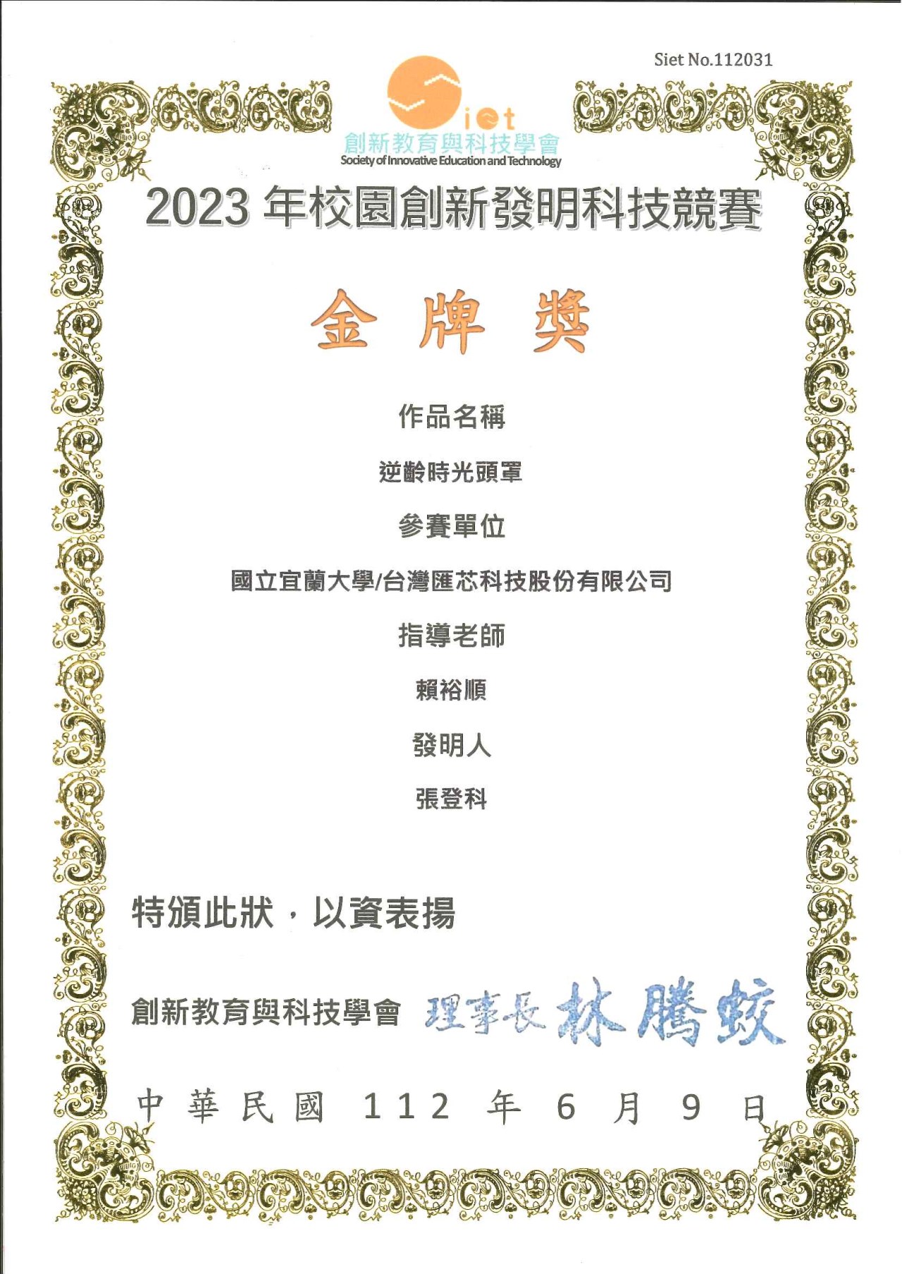2023 校園創新發明科技競賽金牌