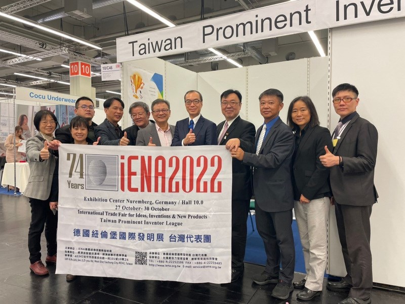 第 74 屆德國紐倫堡發明展(賽)(iENA)自2022/10/27 日起一連舉行 4 天,世界各國逾 500 件以上作品參賽,台灣代表團今年共拿下 2 面特別獎牌、5 面金牌、9 面銀牌、6 面銅牌,中華民國駐慕尼黑代表處處長趙彥清特地到場代表總統、副總統、教育部長頒贈賀電。