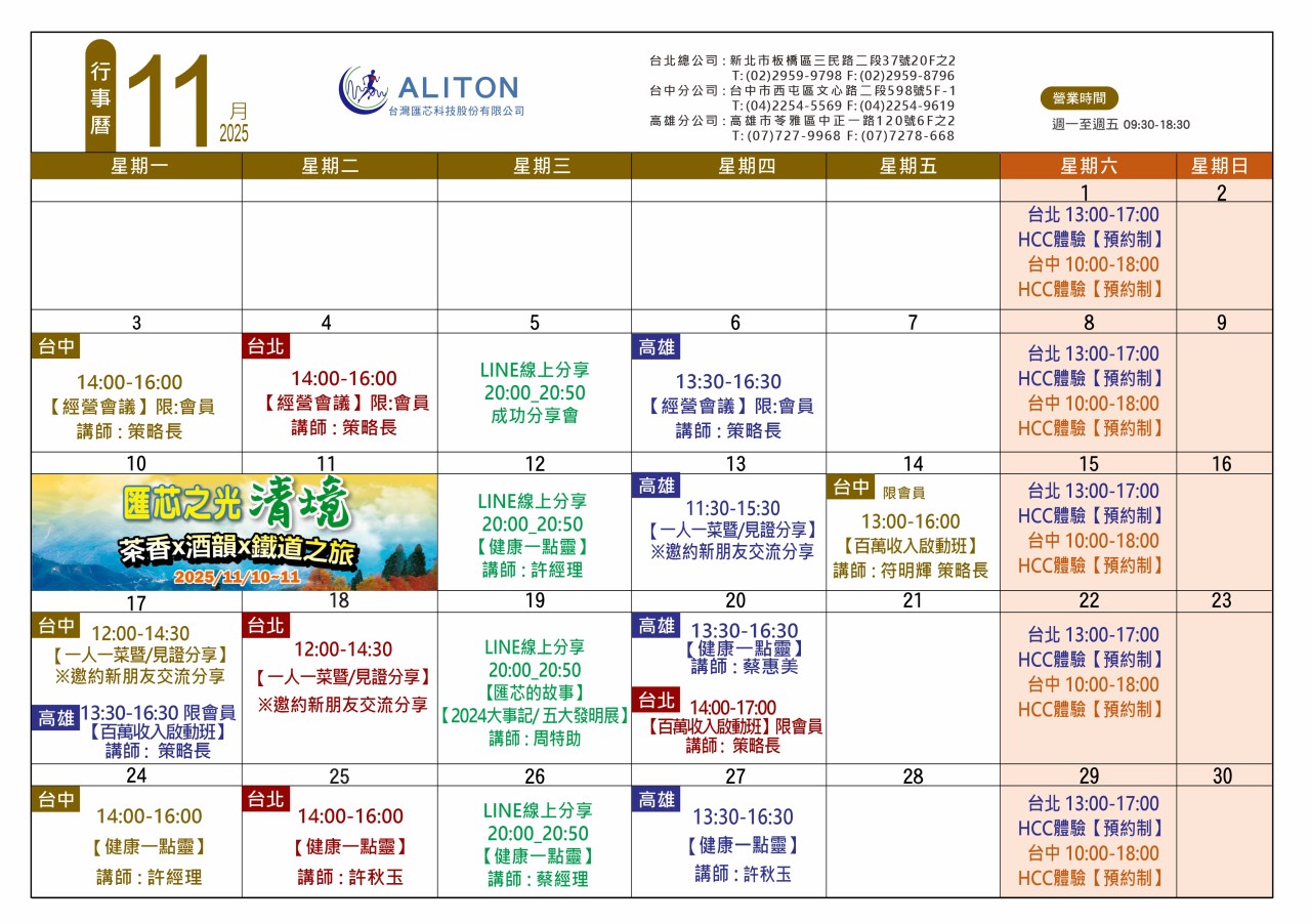 【行事曆】台灣匯芯科技 2025年11月 活動行事曆